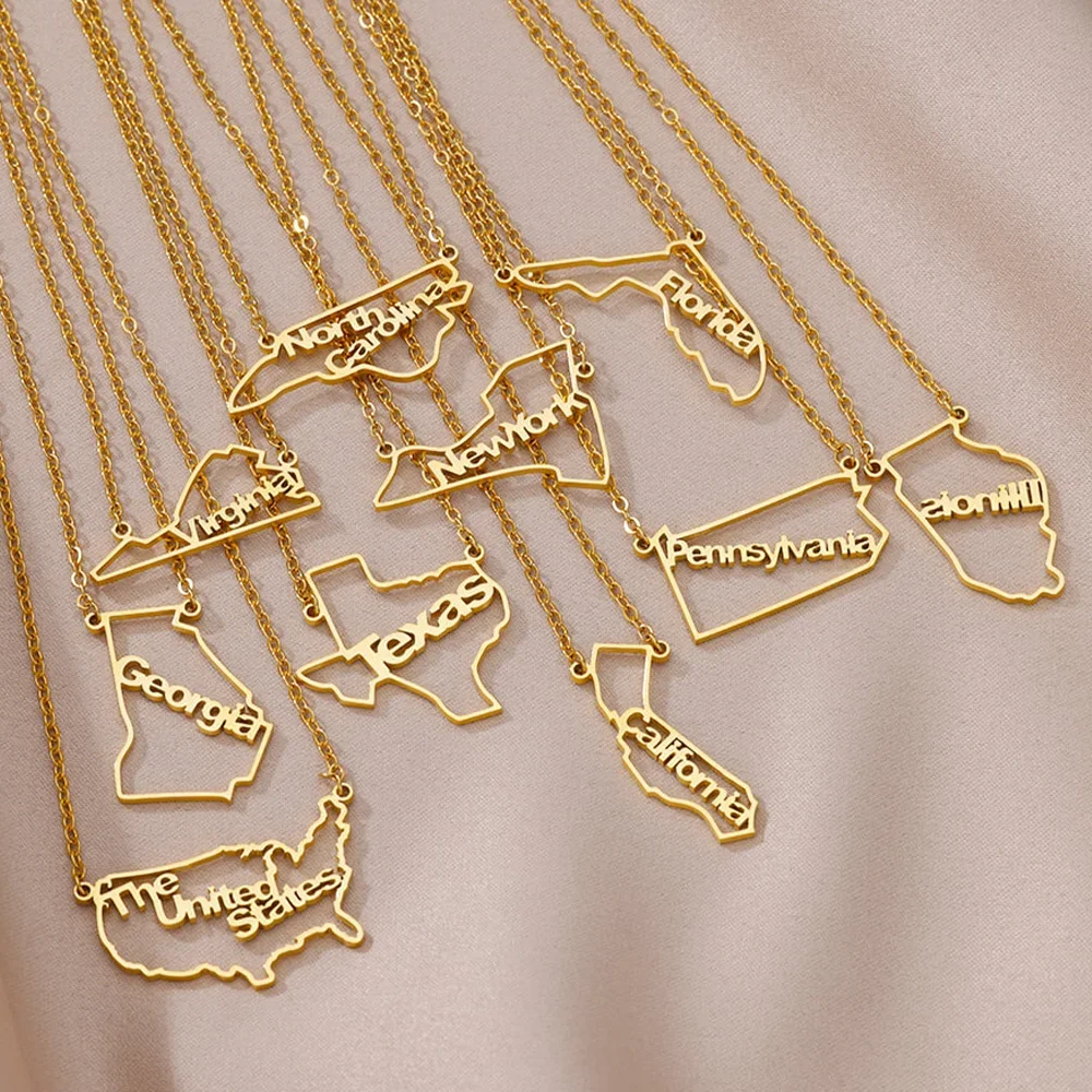 Vergoldete uns Karte Halskette für Frauen amerikanischen Edelstahl Schmuck Zubehör Florida...
