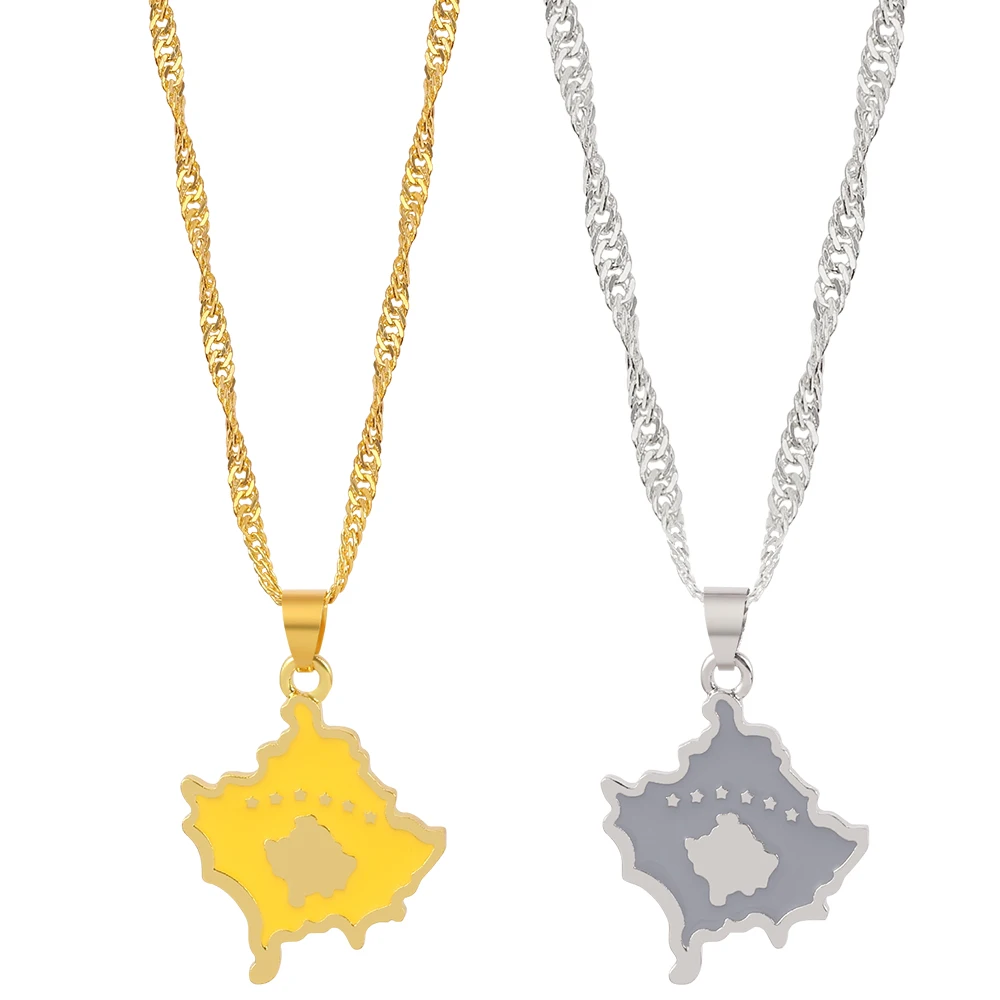 Kosovo Karte Flagge Anhänger Halskette Frauen Mann Gothic Gold Farbe Karte Flagge Halskette Hal...