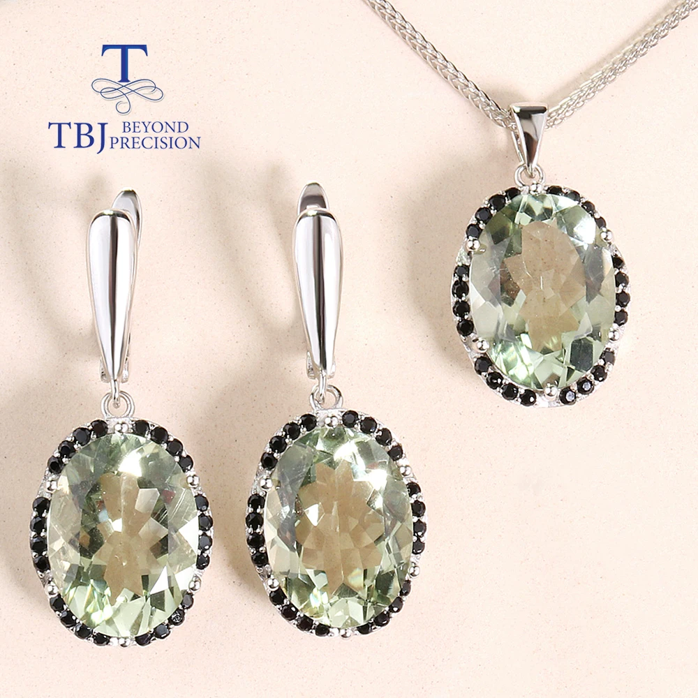 Neu! TBJ natürlicher brasilianischer grüner Amethyst-Anhänger-Ohrring, echter Edelste...