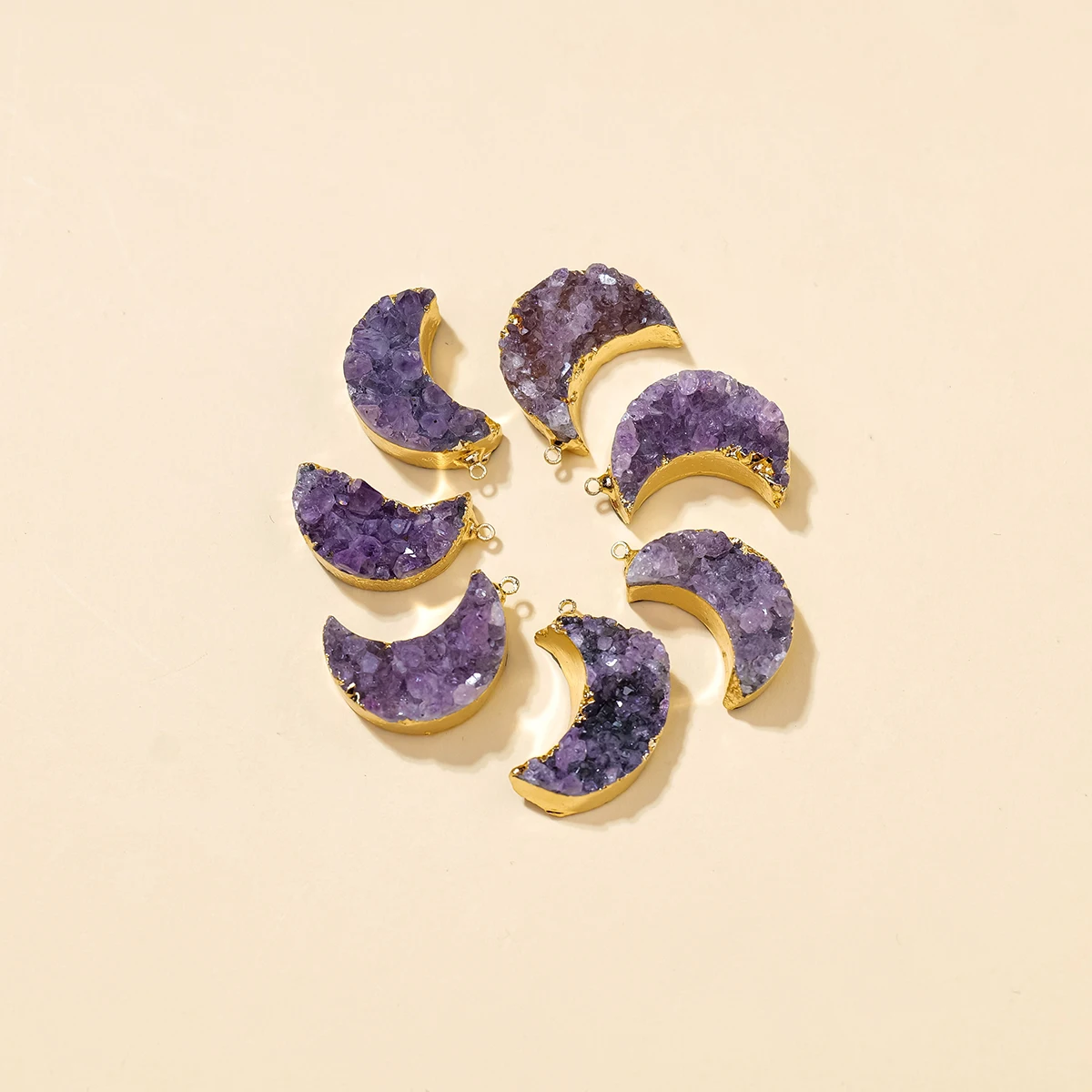 1 Stück natürlicher Amethyst-Mondcluster, umwickelter Anhänger, Amethyst-Zahnloch-Hal...