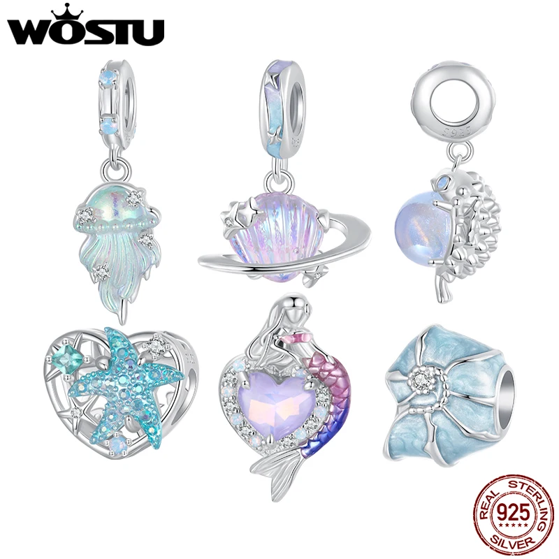 Wostu Sterling Silber Fantasie Quallen Charme Planet Muschel Anhänger Seestern Perlen Sicherhei...