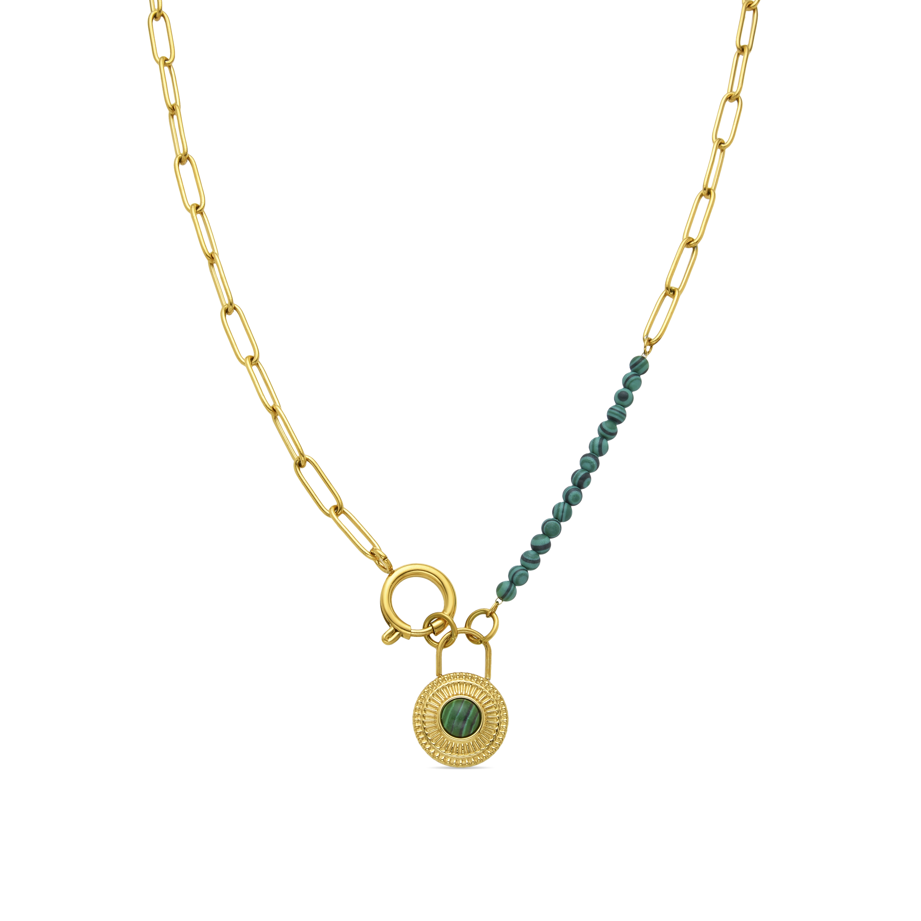 Luxenter Malachit-Halskette aus 18 Karat Gelbgold - Mossir