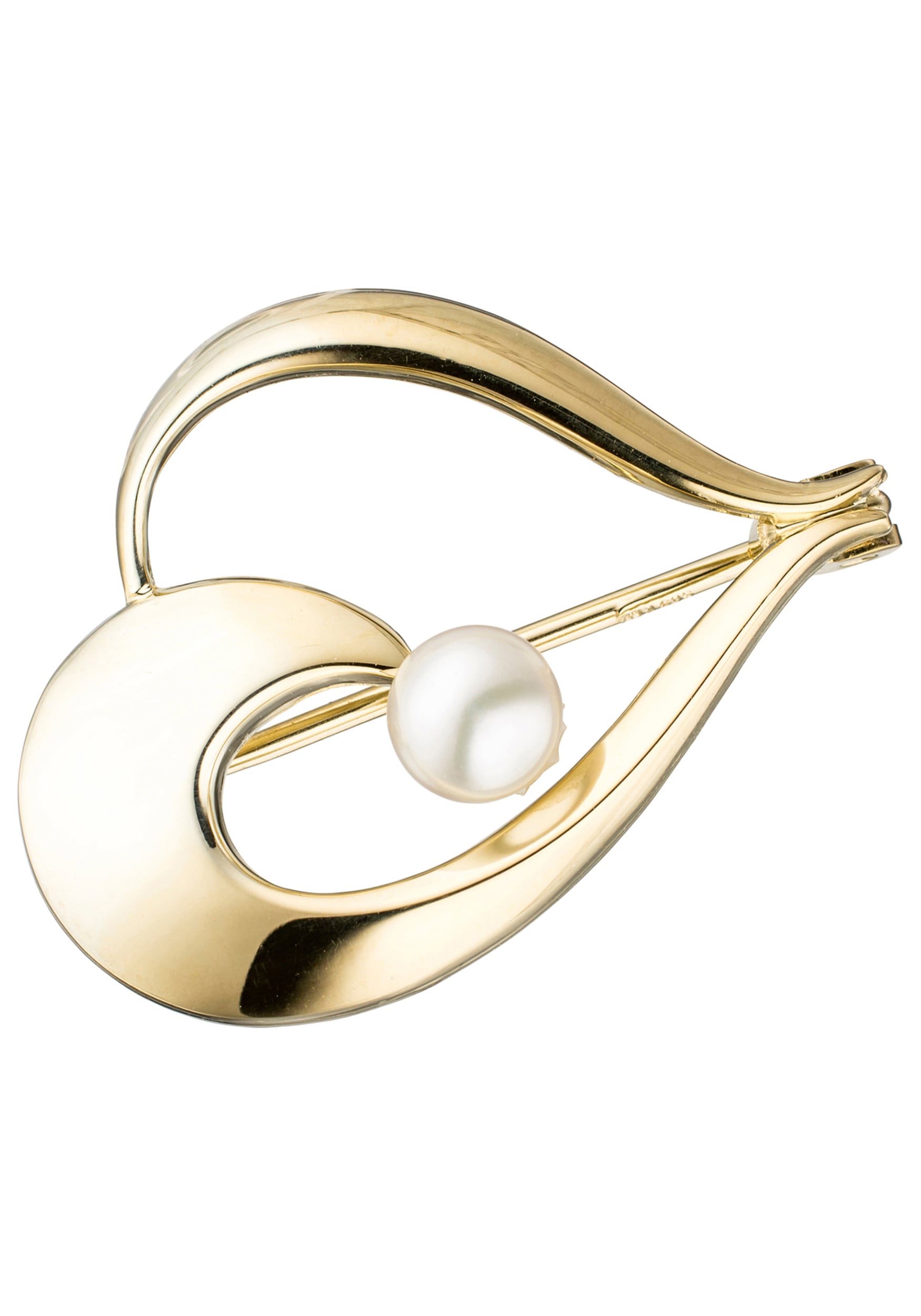 Brosche aus 14 Karat (585) Gelbgold mit einer Süßwasser-Zuchtperle, mit Nadelsicherung H&...