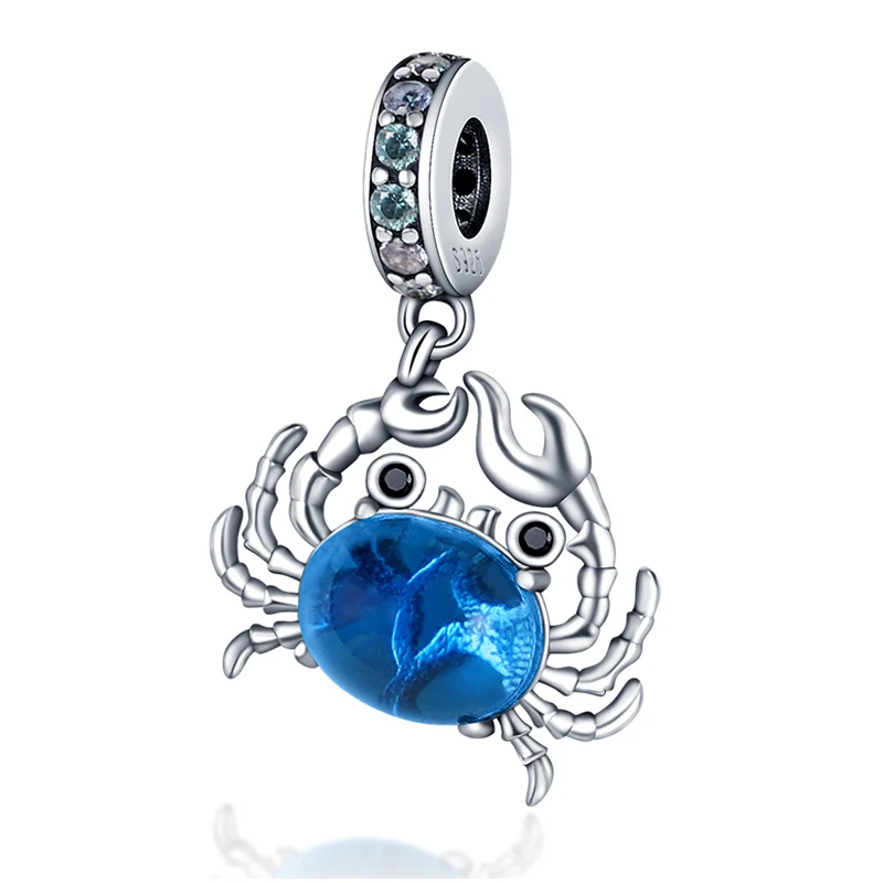 100 % 925er Sterlingsilber-Charm-Perlenanhänger, 3 mm, Ocean-Serie, Krabben-Design, blau, origi...