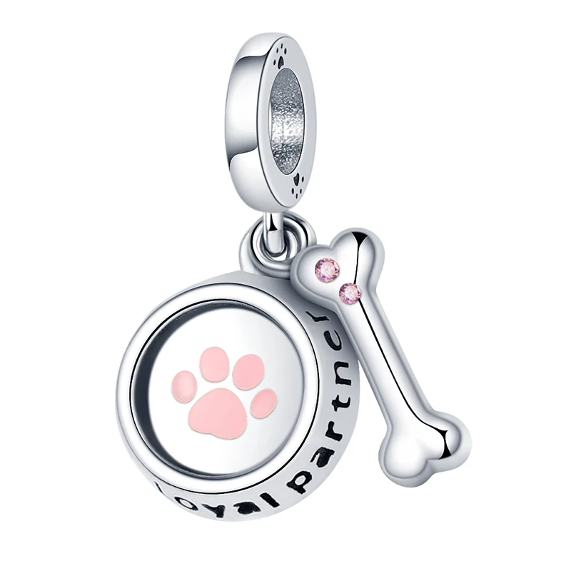S925 Sterling Silber Charm Bead Anhänger 3mm Niedlichen Hund Schüssel Knochen Design S&uum...