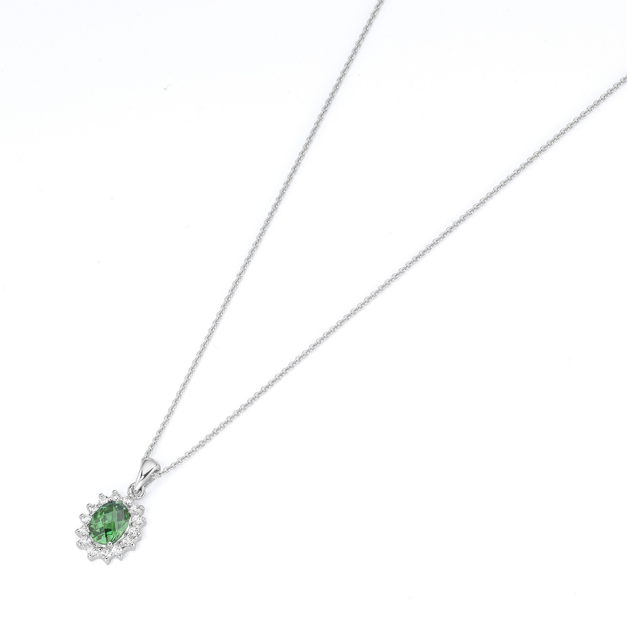 Wunderschöner Klassiker...Dieser ovale Anhänger mit farbigem Stein wird von funkelnden Zir...