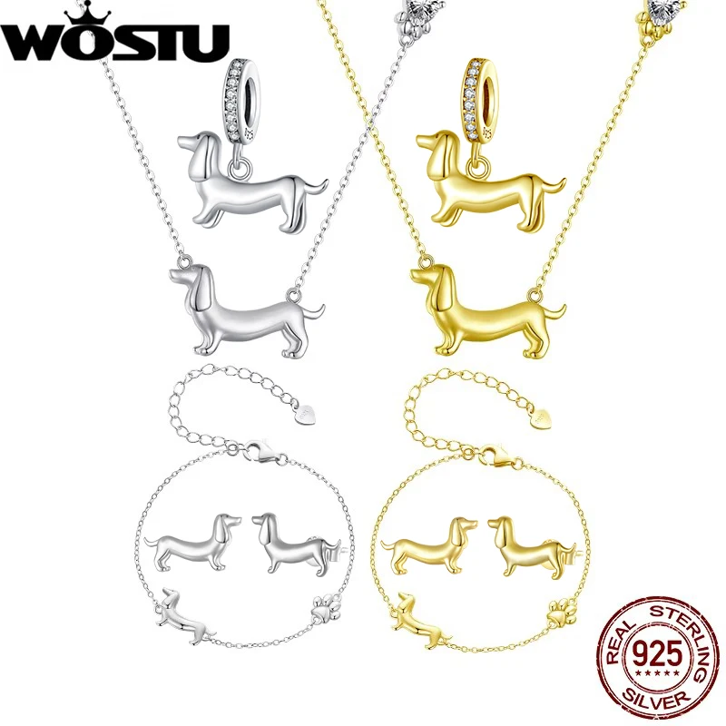 WOSTU Halskette mit Dackel-Anhänger aus 925er-Sterlingsilber, 18 Karat Gold, Haustierpfoten-Ket...