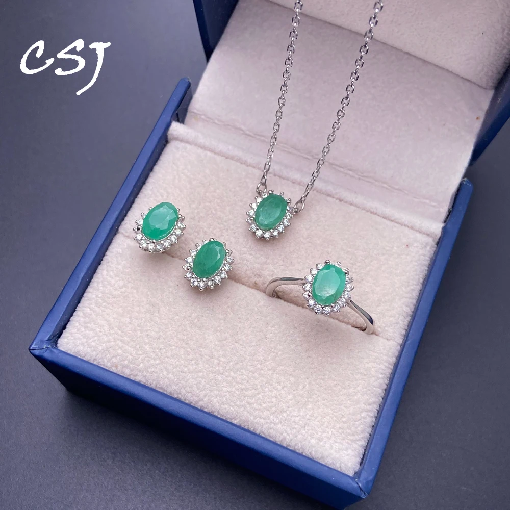 Klassisches natürliches Smaragd-Schmuckset aus Sterlingsilber ...