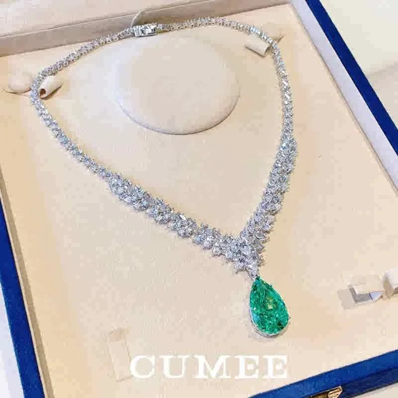 CUMEE Pear Paraida Farbe Künstlicher synthetischer Zirkonia-Edelstein 925er Silber Halsketten-S...