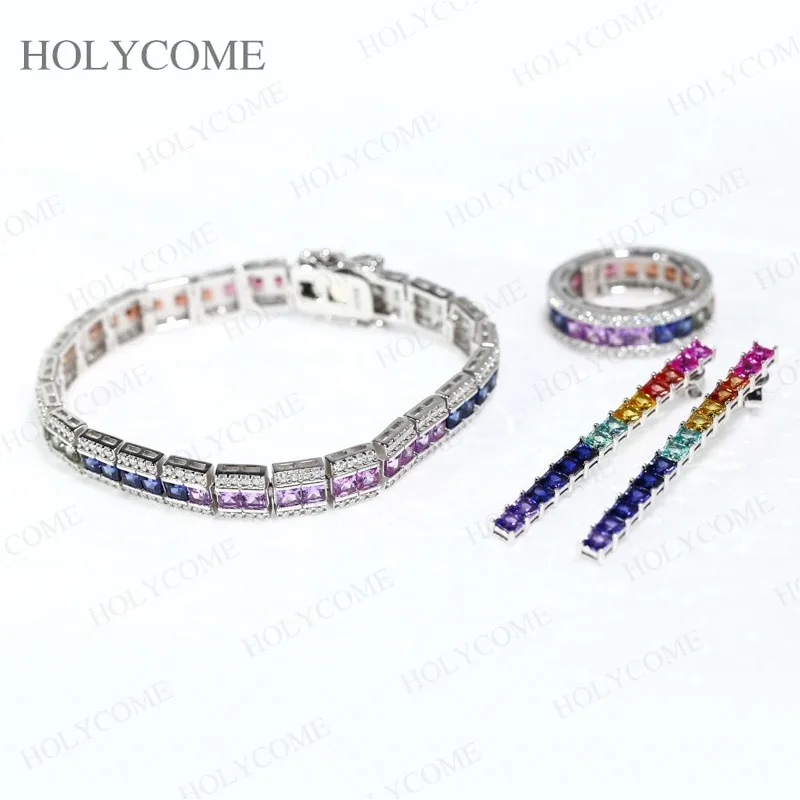 Benutzerdefiniertes Schmuckset im Labor gezüchteter Edelstein, Prinzessin, buntes ganzes Set mi...