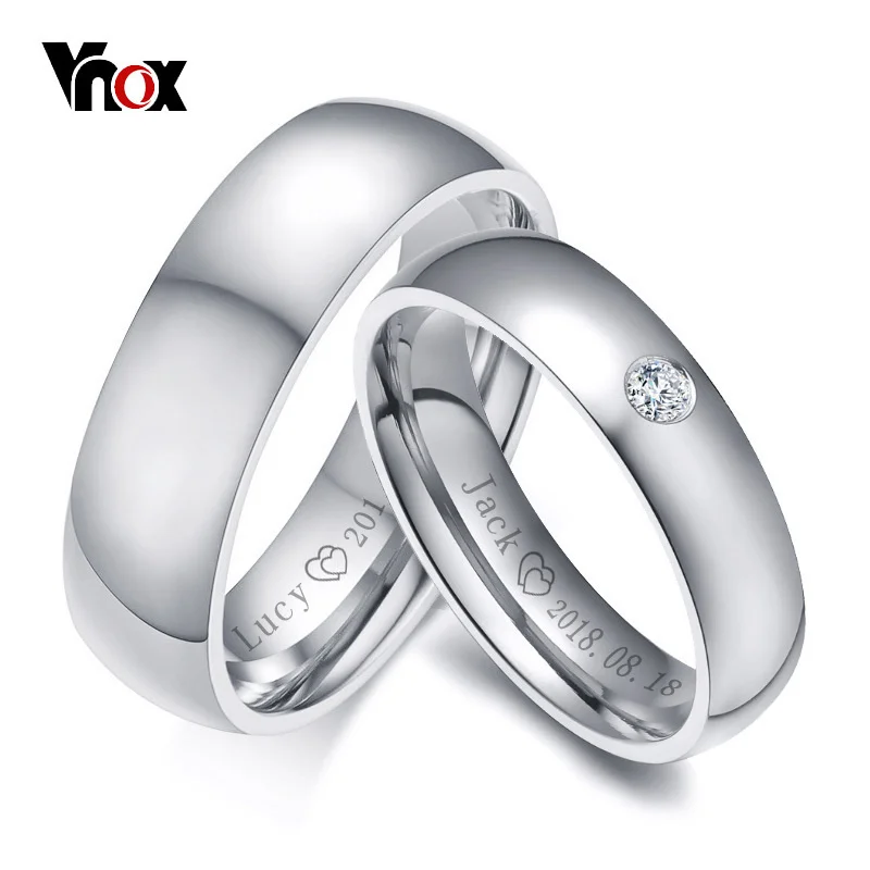 Vnox Basic Eheringe, Ringe für Damen und Herren, personalisierbar, Name, Datum, Liebe, Info, Ve...