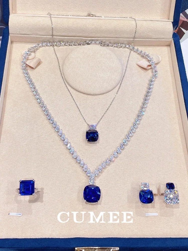 Schlichtes und alltägliches, vielseitiges Halsketten-Set mit königsblauem synthetischem Sa...