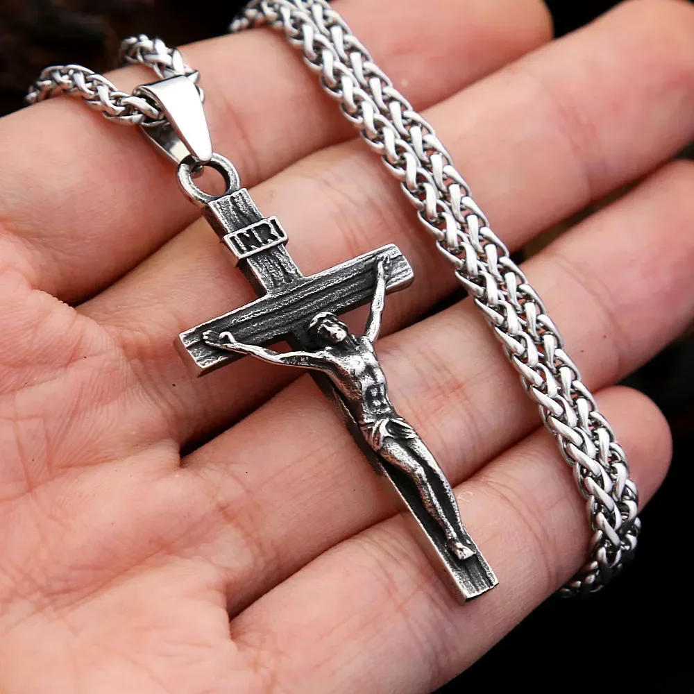 Punk Kruzifix Anhänger Halskette Männer Frauen Edelstahl Jesus Kreuz Halskette Christian R...