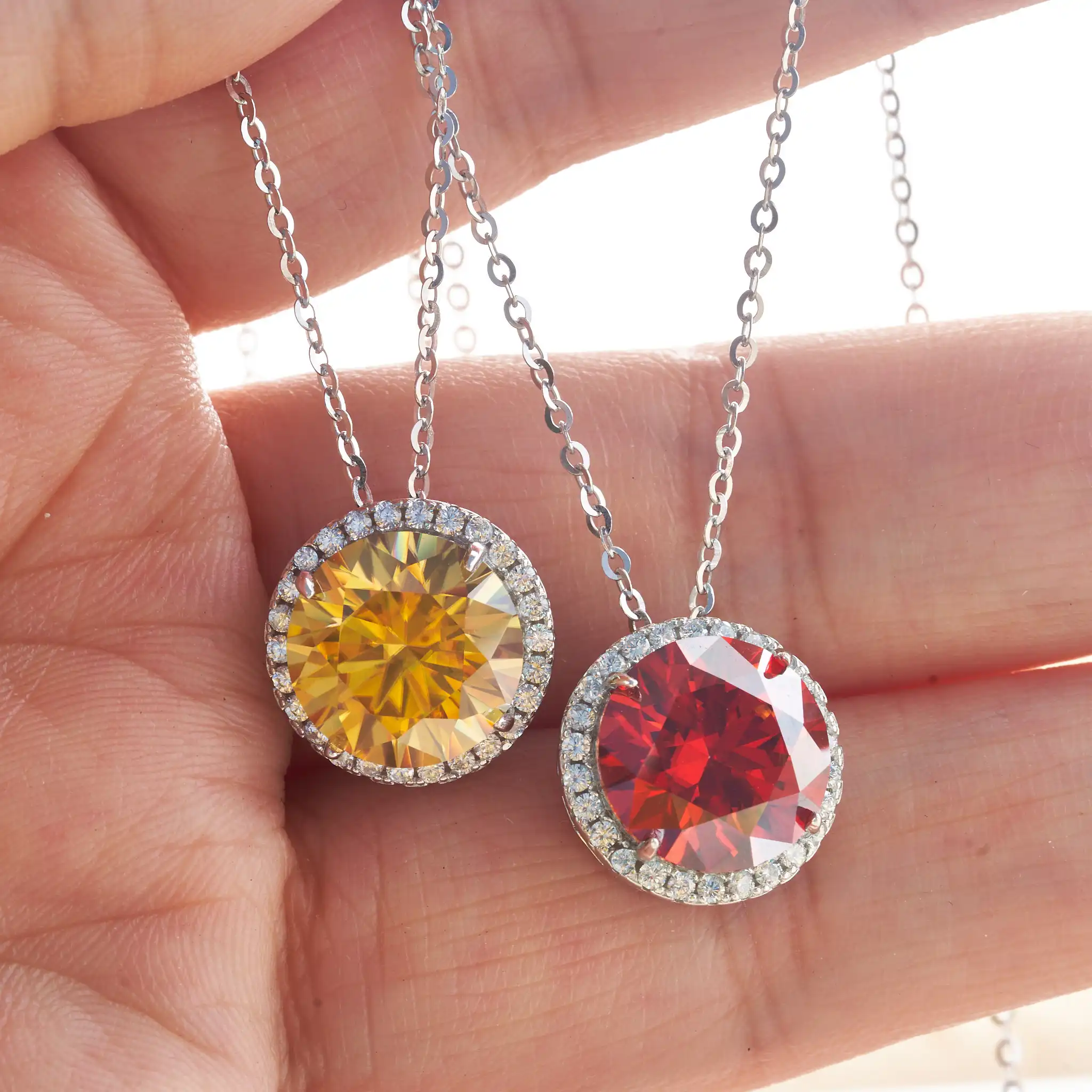 925 Sterling Silber Moissan ite Klassiker 6 Zinken Anhänger Halskette Dekoration High Fashion H...