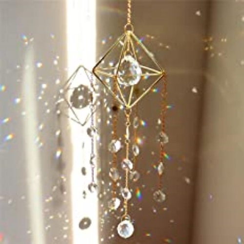 Suncatcher Gold mit Kristallen, Mondhimmel, Lichtreflexionskristall...