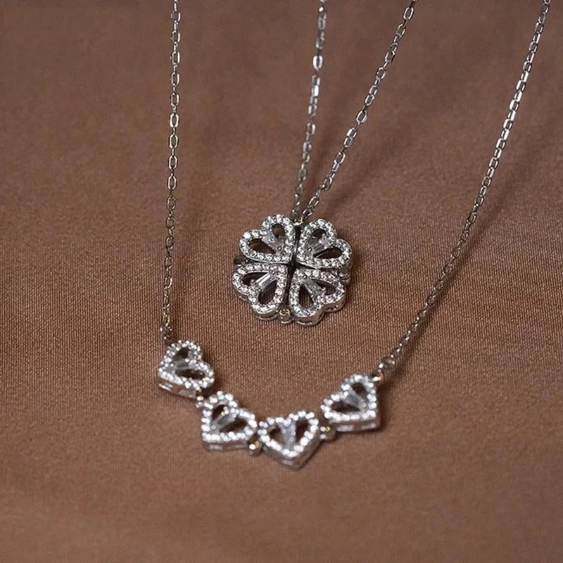 Herzförmige vierblättrige Kleeblatt-Anhänger-Halskette, Silber, Gold, Schmuck, Zirkon...