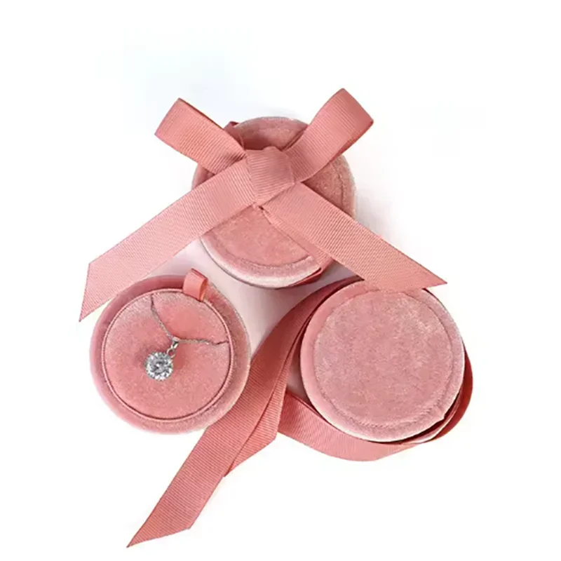 Zarte handgemachte Vintage Samt Anhänger Halskette Boxen Geschenkbox rosa Band Aufbewahrung Rin...