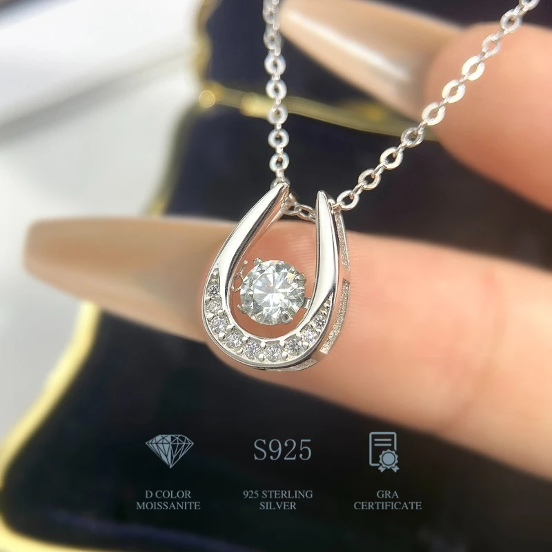 Hufeisen-Halskette für Damen, 925er Sterlingsilber, D-Farbe, Moissanit, glückliche Hufeise...