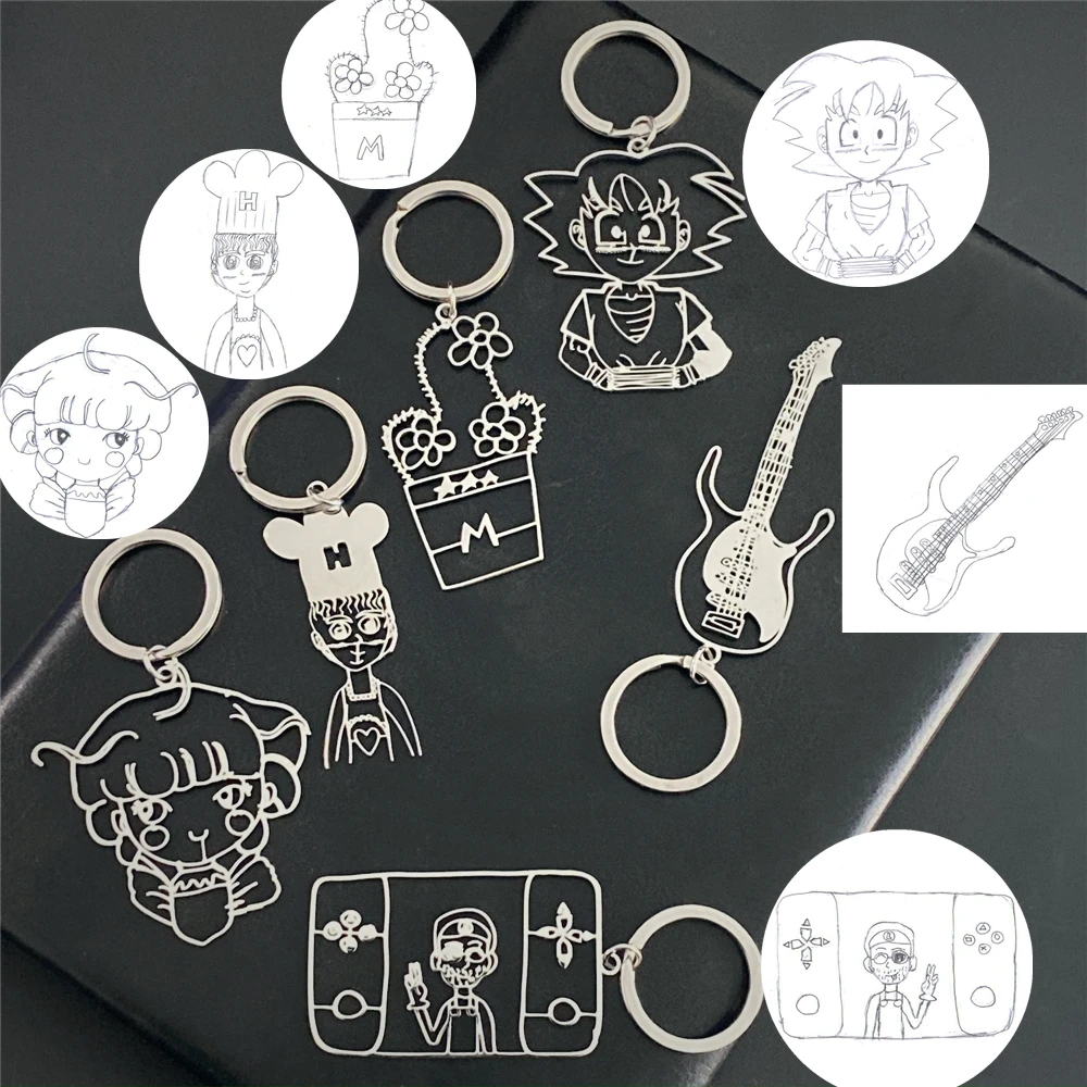 Maßgeschneiderter Kinder-Schlüsselanhänger zum Zeichnen, Edelstahl, Kinderkunst, per...