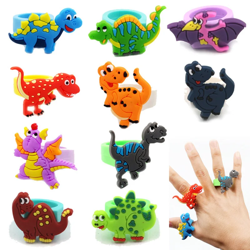 10 teile/los Nette Cartoon Kinder Ringe Kawaii Koreanische Kinder Jungen Dinosaurier PVC Finger Ring...