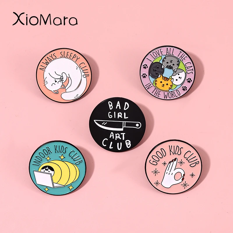 Indoor Kinder Schlaf club Emaille Pins benutzer definierte gute Kinder Bad Girl Art Club Brosche Rev...
