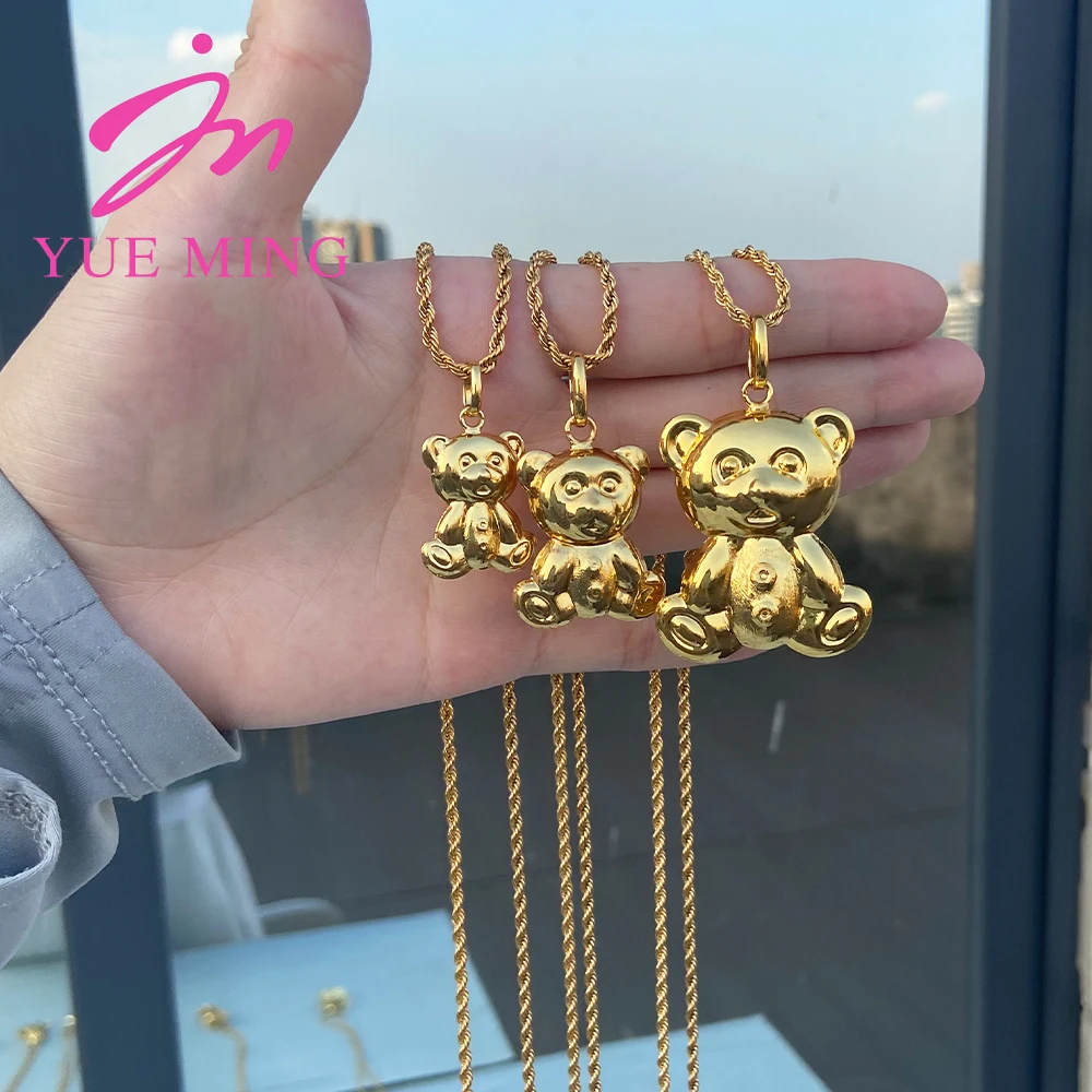 3PCS YM Gold Überzogene Halskette 80cm Kette Mode Bär Anhänger Kupfer Schmuck Fü...