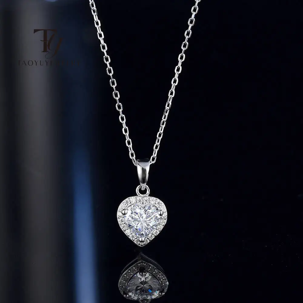 TY 1 Karat Moissanit Herz Anhänger Damen Halskette D Farbe Echt 925 Sterling Silber Halskette G...