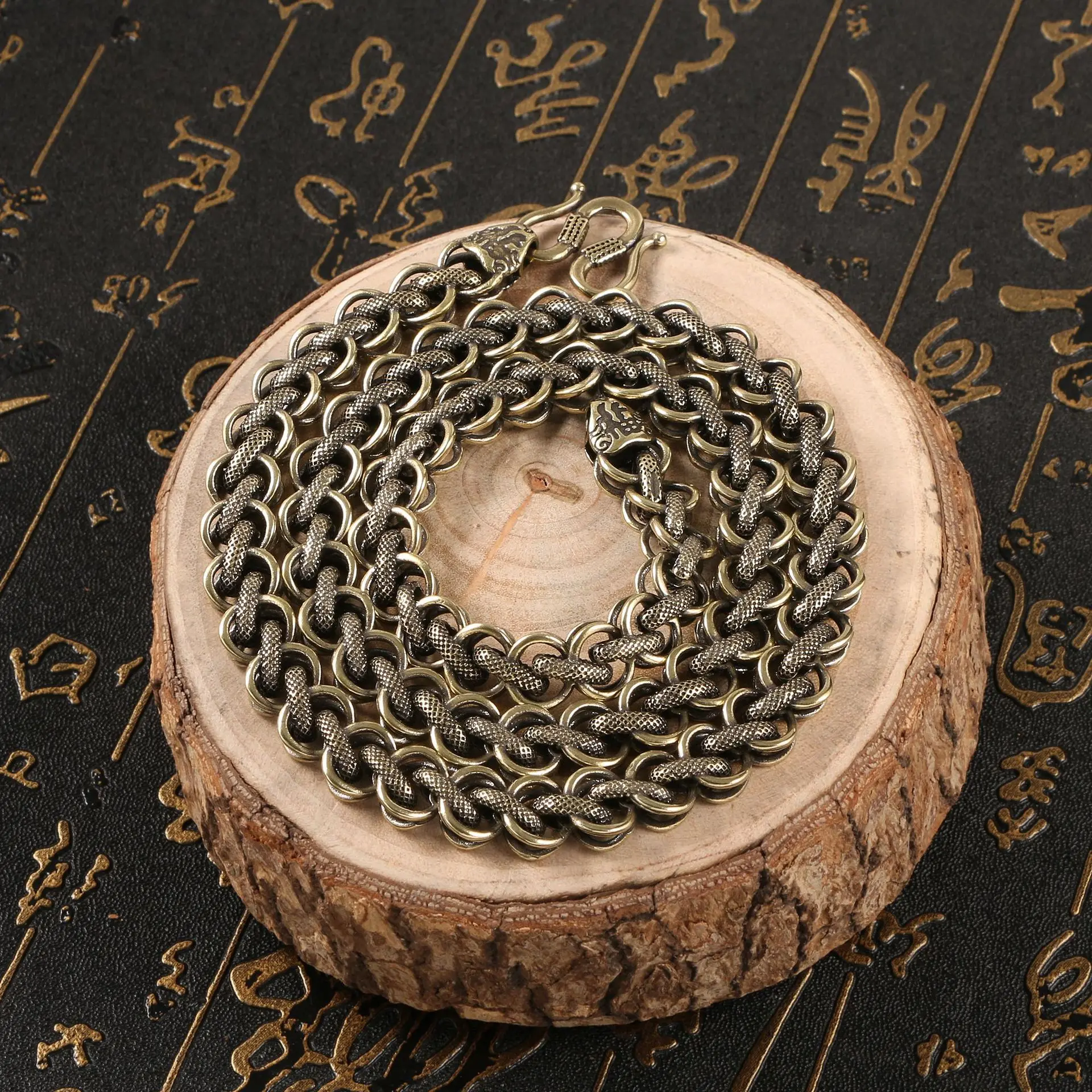 60CM Messing Lange Kette Männer Halskette Vintage Punk Messing Kreis Schlange Skala Muster Flac...