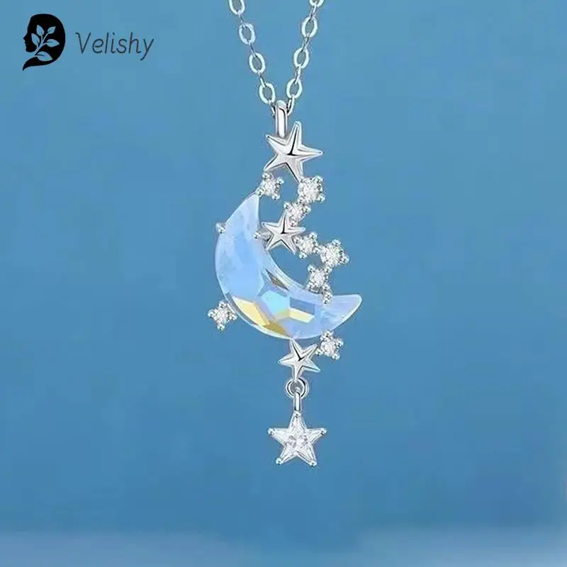 Halskette Künstliche Halsreifen Stern Mond Mondstein Halskette Frau Planet Braut Hochzeit Halsk...