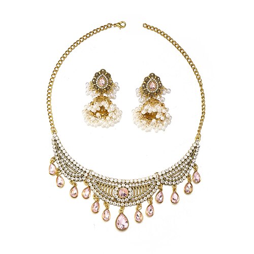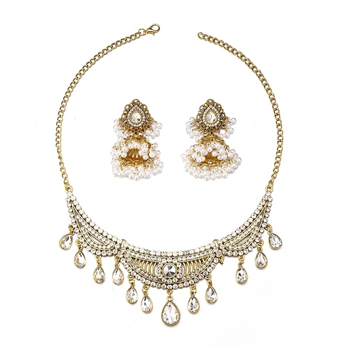 Elegantes, vergoldetes Choker-Halsketten- und Ohrringset mit mehrfa...