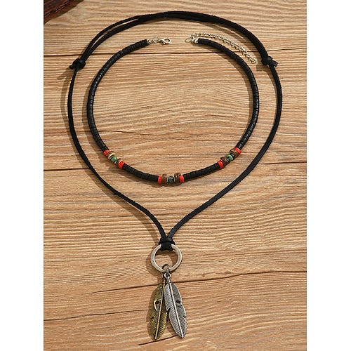 Herren-Halskette mit mehrlagigem Federanhänger, verstellbarer ...