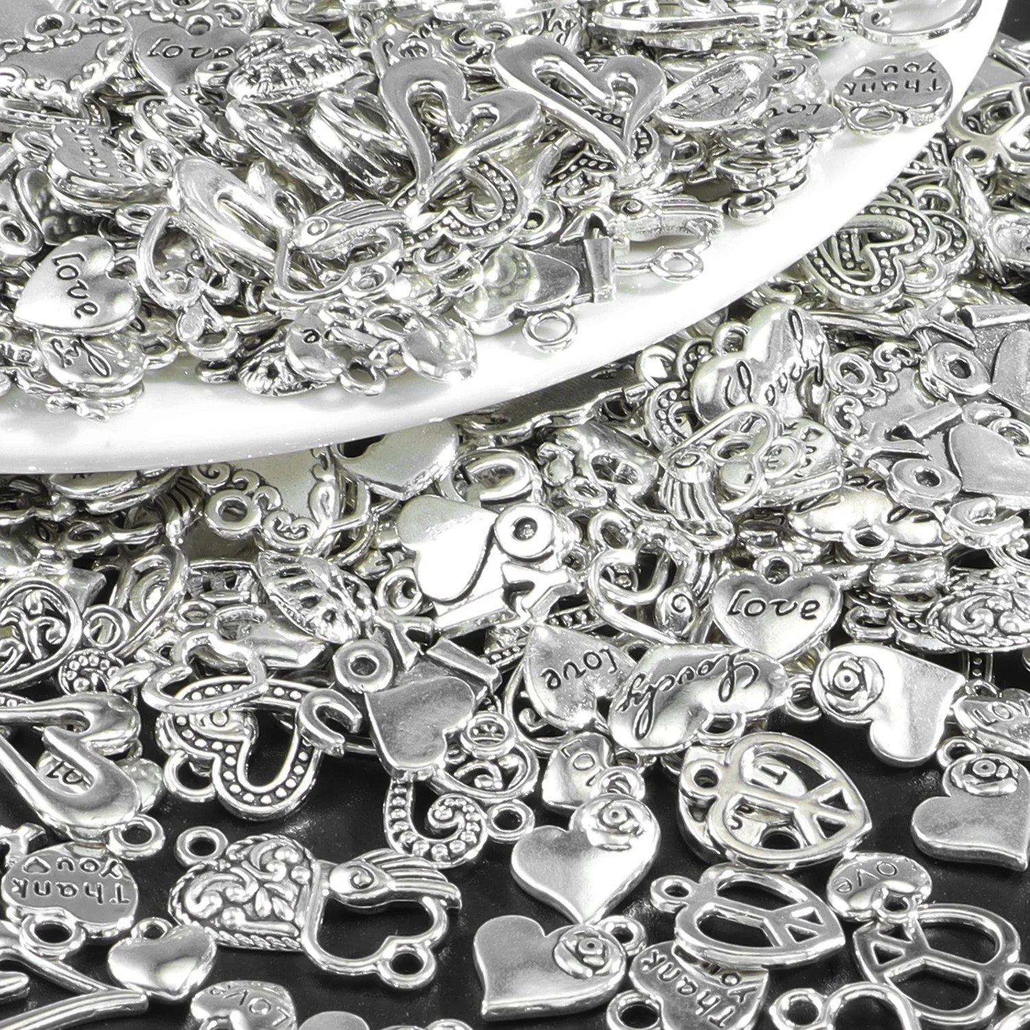 50 Stück Antik Silber Liebe Herz Charm Legierung tibetischen Stil zufällig gemischt Herz C...