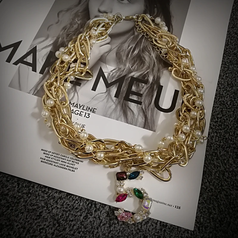 Multilayer simulierte perle colliers halskette für frauen pullover winter halskette