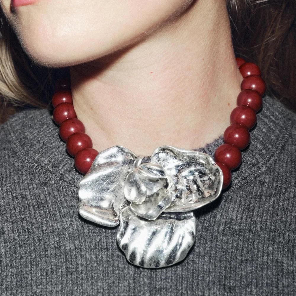 girlgo Böhmische handgefertigte Perlenblumen-Halskette, rote u...