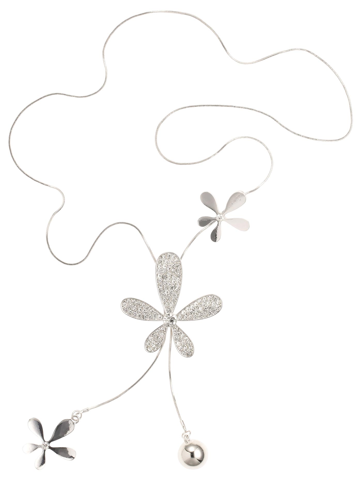 Kette In aufwendiger Verarbeitung, mit Blüten-Applikation. Aus hochwertigem Metall, mit Glasste...