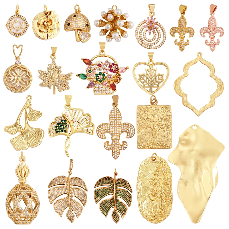 Einzigartige Rose Blume Ahornblatt Großer Baum Pflanze Charm Anhänger, 18k Gold Zirkon Sc...