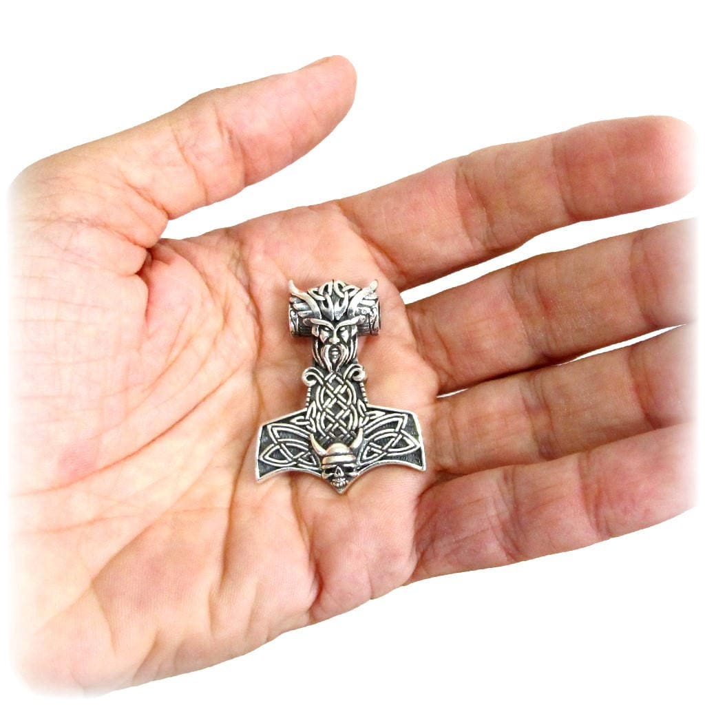 Thor Hammer Mjolnir Knotwork Viking Wikinger Odin Skull Norse Sterl...