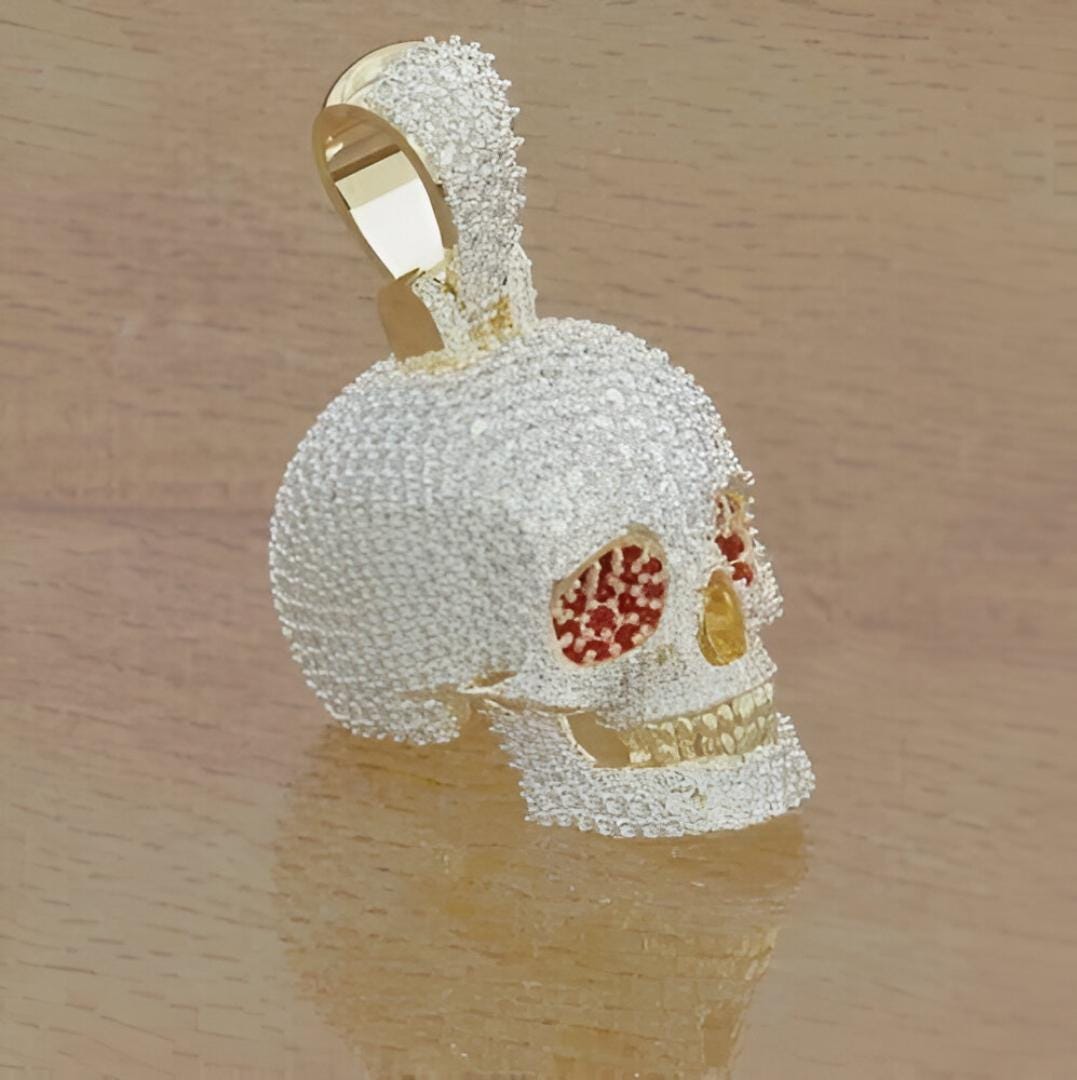 "Round Cut Diamond Men's Skull Faced Pendant, 14K Yellow Gold Plated, Customized Men's Pendant,...