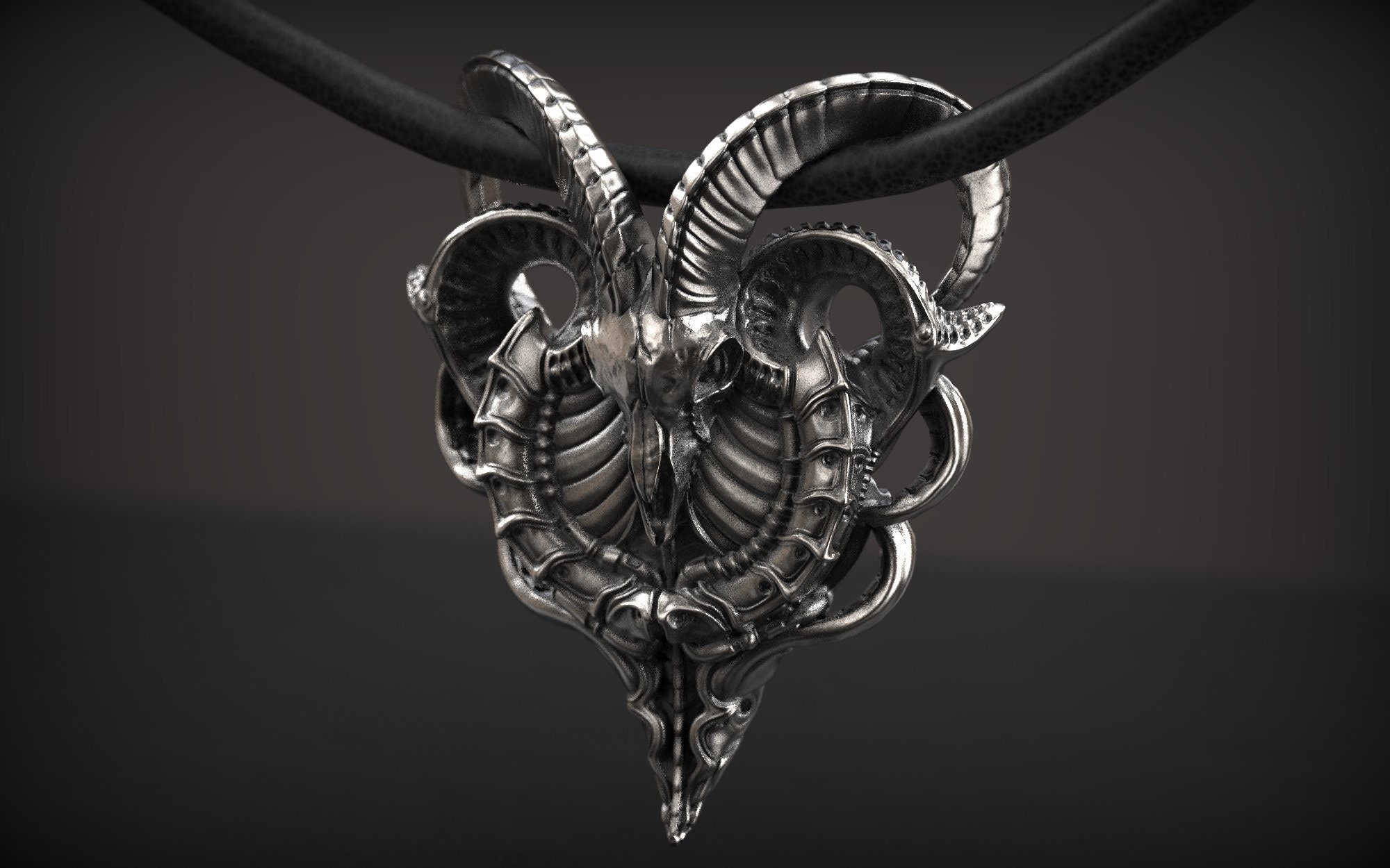 H.R. Giger Inspired, Goat Skull pendant, Biomechanic Goat Skull Pen...