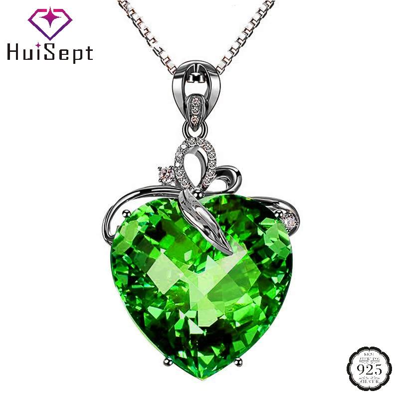 HuiSept 925 Silber Schmuck Halskette Herz Form Smaragd Zirkon Edels...