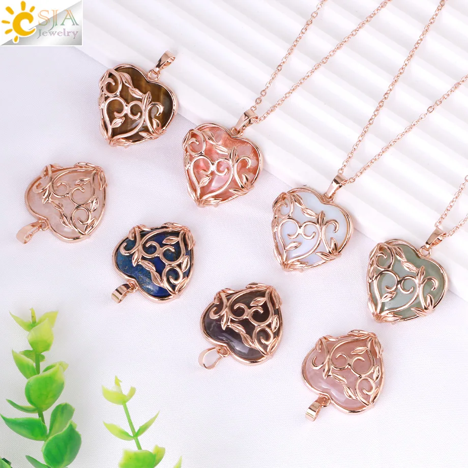 CSJA herz anhänger naturstein anhänger Natürliche Stein Herz Form Halskette Anhä...