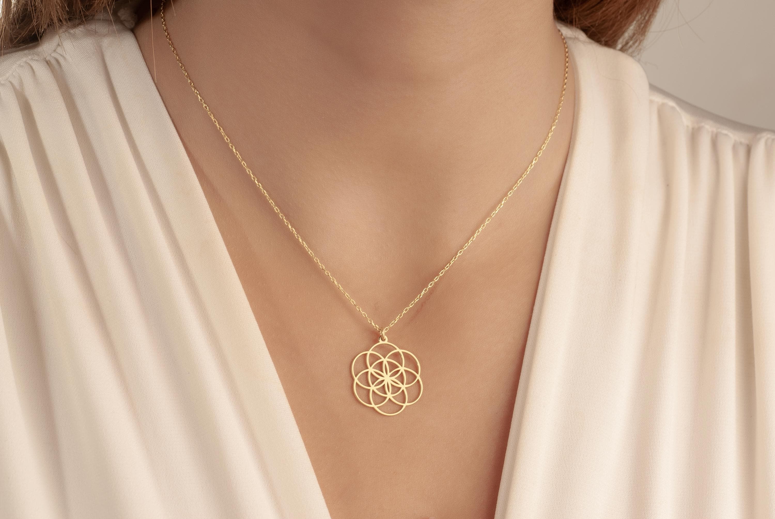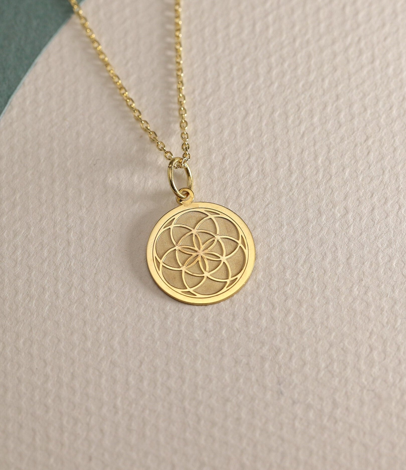 Gold solide 14K echtes Gold Samen des Lebens Halskette, personalisi...