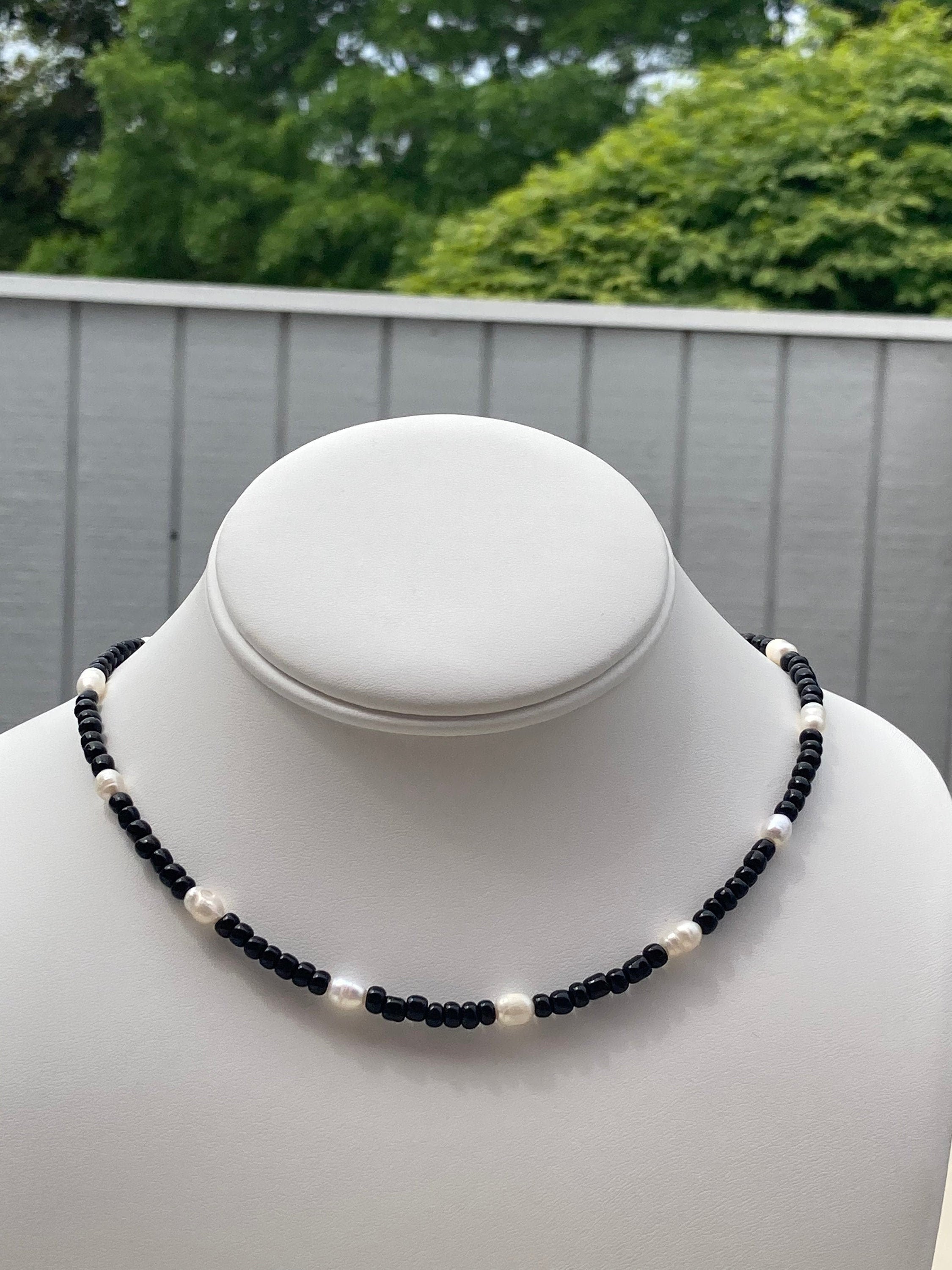 Schwarze Samen Perlen Halskette / Choker Seed Bead / Süß...