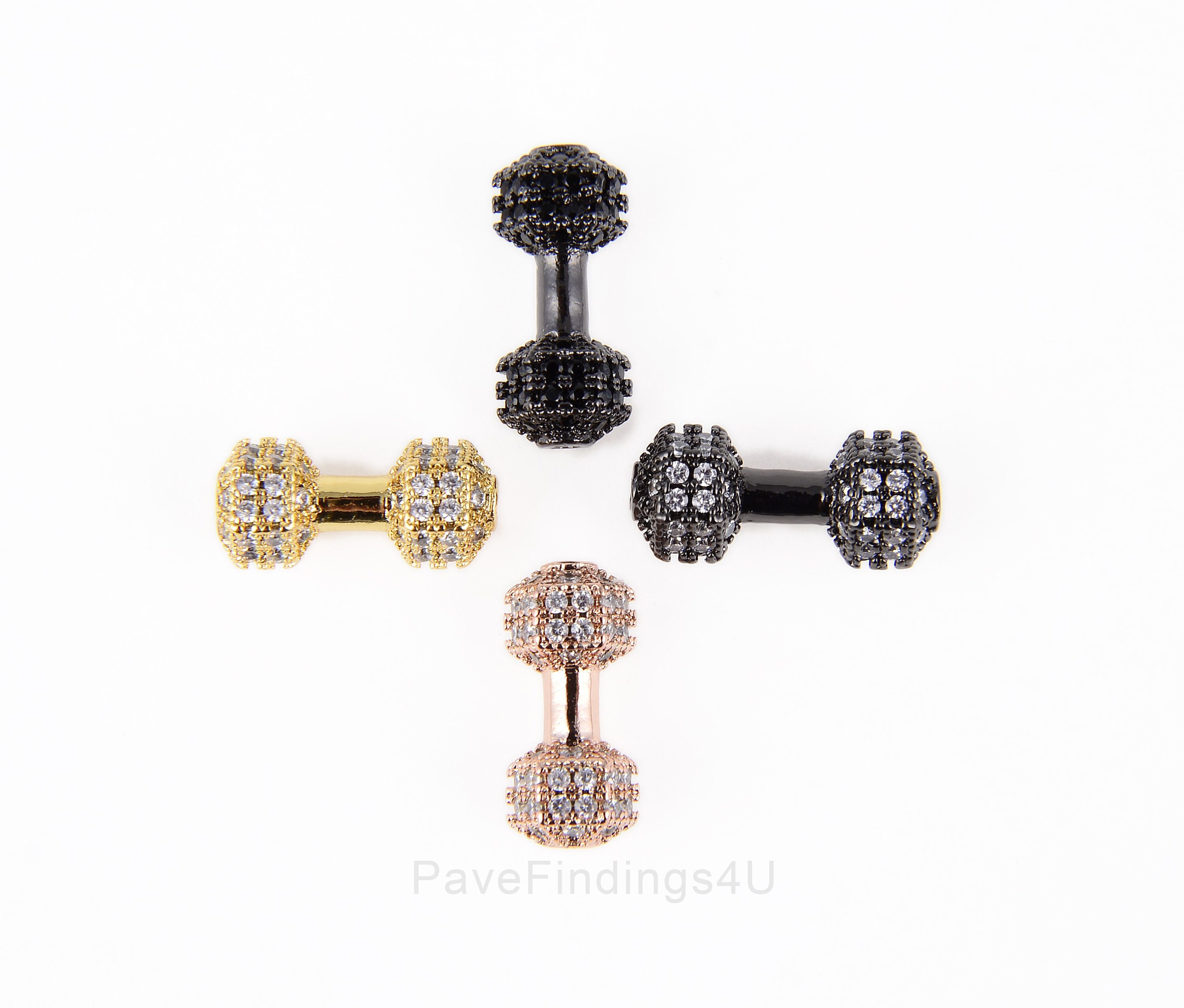Hantel Bead Charm CZ Micro Pave, 18K Gold Hantel Beads, Armband Bea...