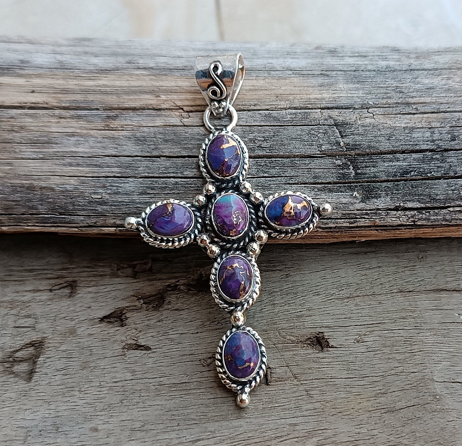 Purple Copper Turquoise Pendant, 925 Sterling Silver Cross Pendant,...