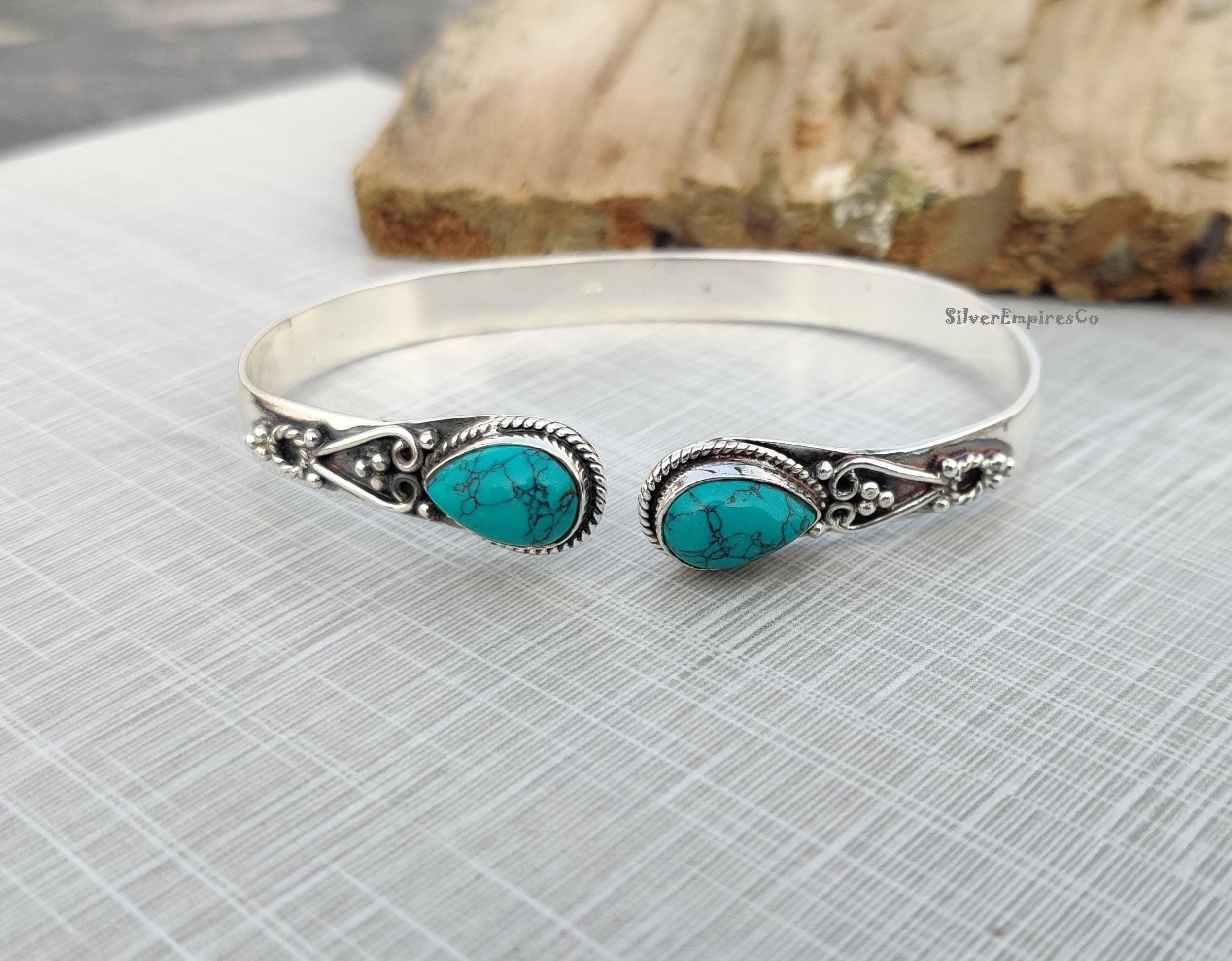 Blue Turquoise Bangle, 925 Sterling Silver Bangle, Turquoise Bangle...