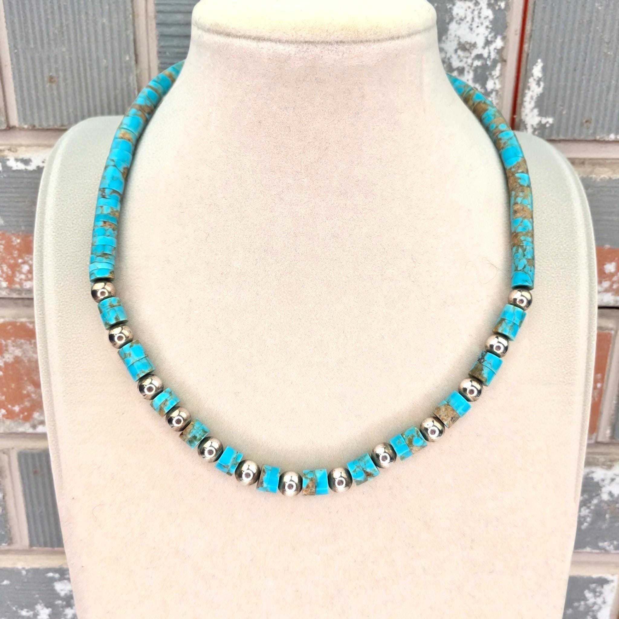 Die Vintage Türkis Heishi Bead Sterlingsilber 925 Choker Halskette, die von erfahrenen amerikan...