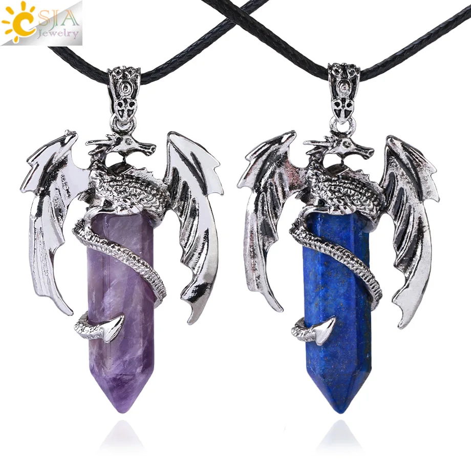 CSJA Tier Drachen Mann Halskette Natürliche Stein Healing Rosa Quarz Sechseckigen Kristall Anh&...