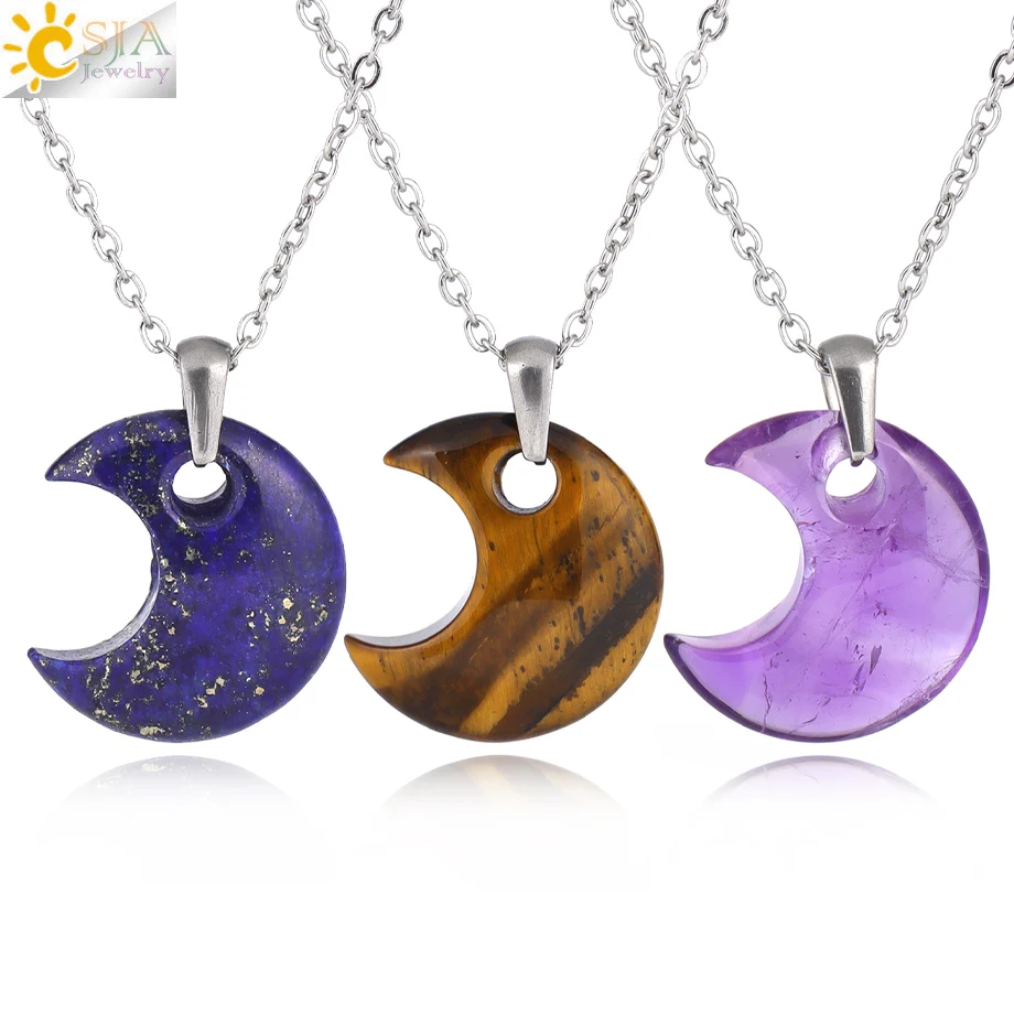 CSJA Halbmond Anhänger Halskette für Frauen Mädchen Natürliche Kristall Stein Am...
