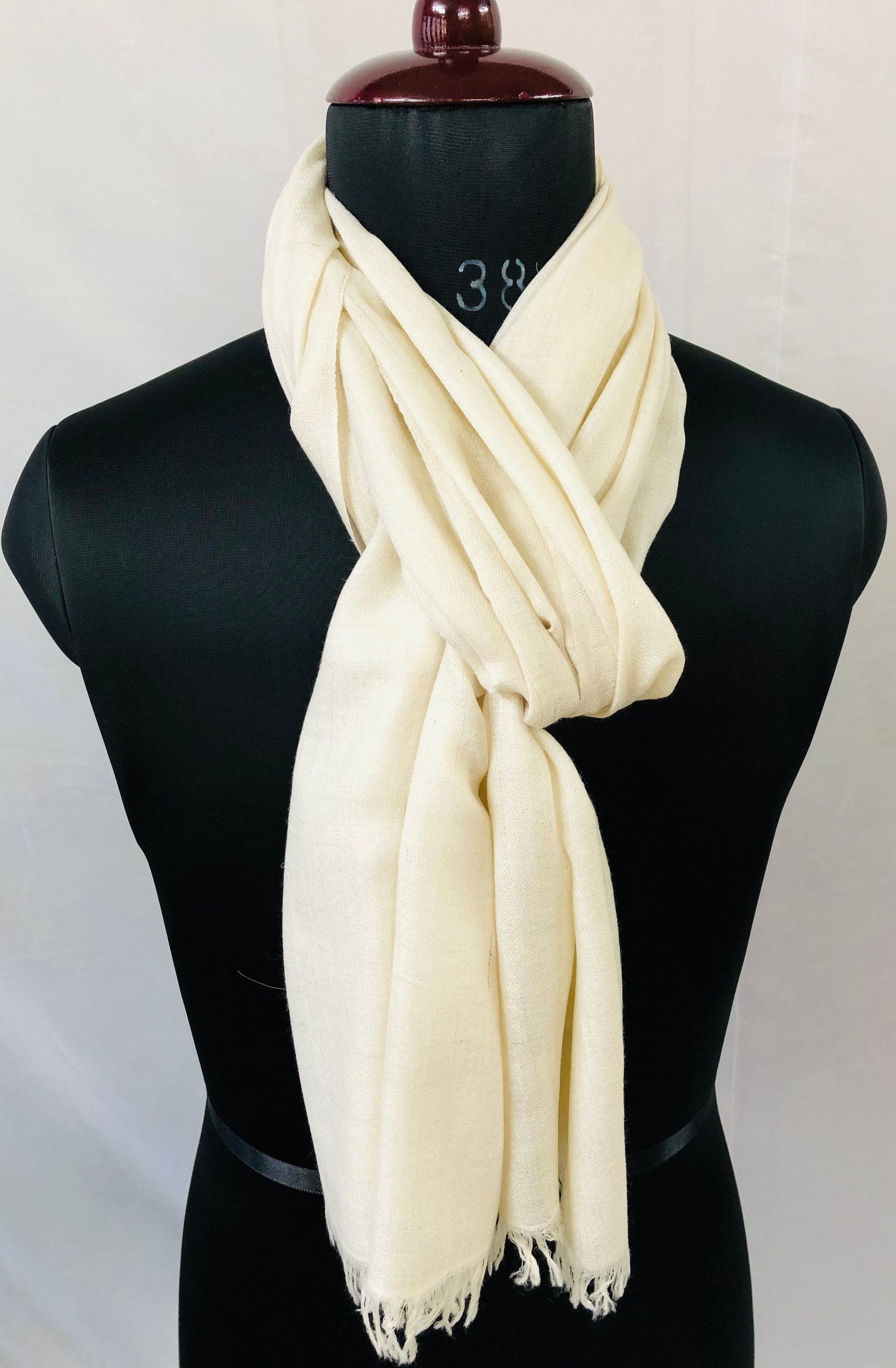 Handgefertigter weißer Kaschmir Pashmina Schal: Weicher geweb...